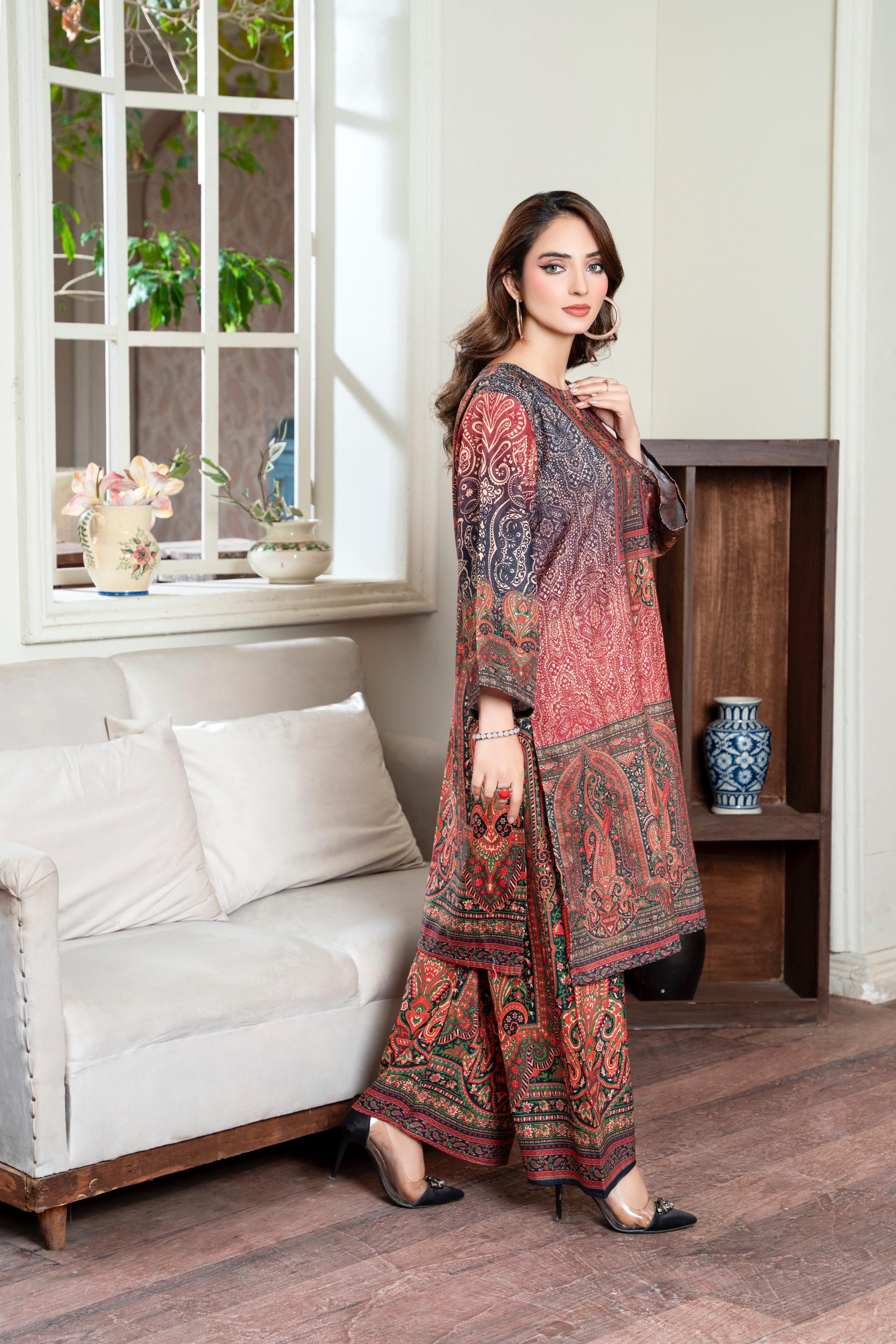 FALL CRAZE’ 25 Stuff :  Khadder  Note : Branded Quality digital print  👗👗👗  Shirt Size 👇👇👇Length : 39Chest : Medium 21Large 23.Armhole : 12 Bazo : 21Teera : 15👗👗👗  *trouser * 👇👇👇Length. 39Width. 35Asan....
